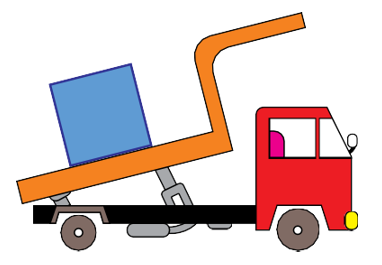 62. (Famerp 2018) Um caminhão transporta em sua carroceria um bloco de peso 5 000 N. Após estacionar, o motorista aciona o mecanismo que inclina a carroceria.