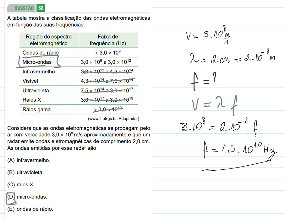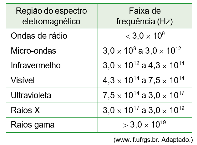 68. (Famerp 2018) A tabela mostra a classificação das ondas eletromagnéticas em função das suas frequências.
