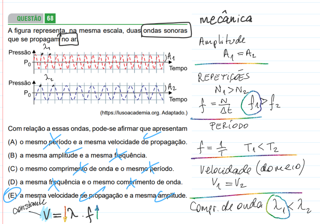 68. A figura representa, na mesma escala, duas ondas sonoras que se propagam no ar.