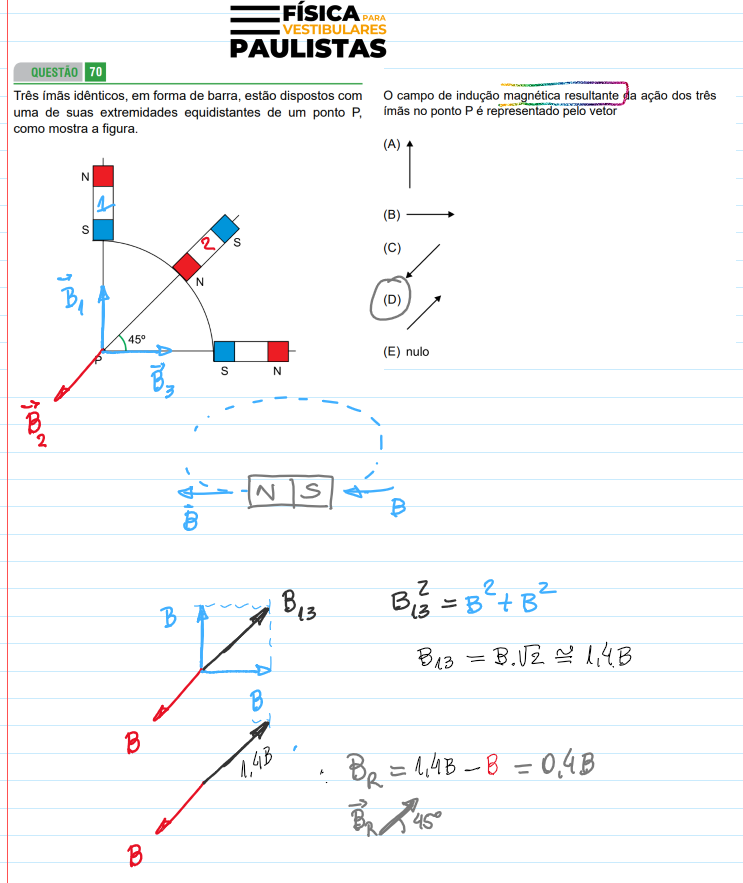O campo de indução magnética resultante da ação dos três ímãs no ponto P é representado pelo vetor