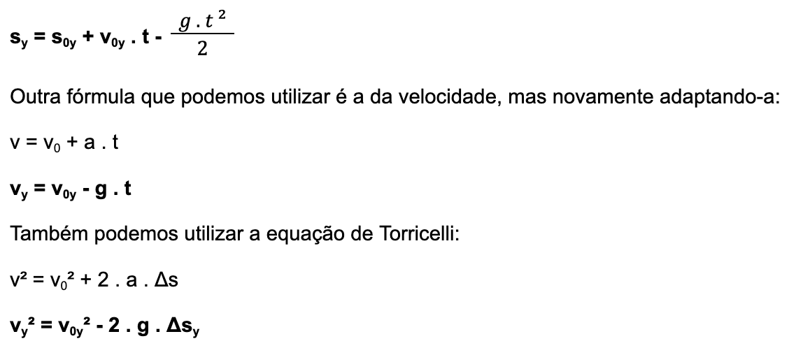 Vamos ver as fórmulas do MUV e o MU para um lançamento oblíquo