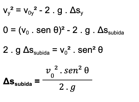 Vamos ver as fórmulas que podemos utilizar para calcular o tempo de subida, altura máxima e alcance na horizontal.