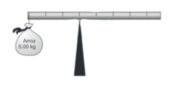 (ENEM/2015) Em um experimento, um professor levou para a sala de aula um saco de arroz, um pedaço de madeira triangular, e uma barra de ferro cilíndrica e homogênea. Ele propôs que fizessem a medição da massa da barra utilizando esses objetos. Para isso, os alunos fizeram marcações na barra, dividindo-a em oito partes iguais, e em seguida apoiaram-na sobre a base triangular, com o saco de arroz pendurado em uma de suas extremidades, até atingir a situação de equilíbrio.
