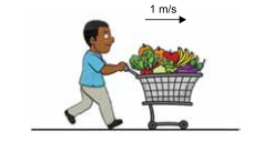 Em um supermercado, uma pessoa empurra seu carrinho de compras com velocidade de 1 m/s por um corredor retilíneo.