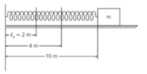 Perceba que o enunciado nos diz que o comprimento inicial da mola é 2 m e que o objeto encontra-se na posição de 10 m. Ou seja, a variação sofrida pela mola (nosso Δx) é igual a 8.