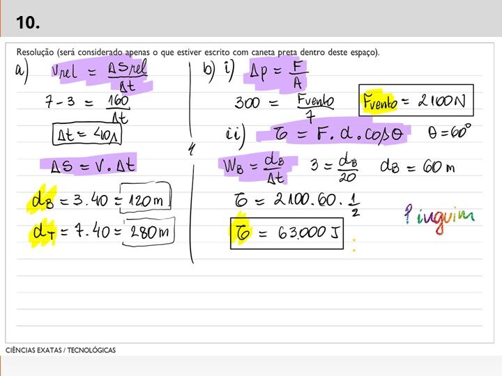 ii) o trabalho t exercido por Fvento num deslocamen- to do barco de duração Dt = 20 s.