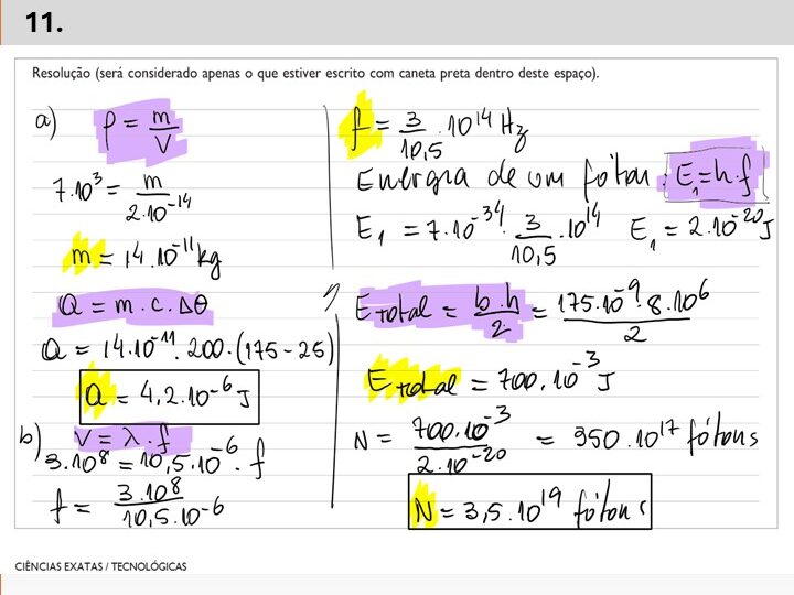 a) Para a formação do plasma, inicialmente eleva-se a temperatura da gota de estanho através do bombardeamento com um primeiro pulso de laser. O estanho tem densidade r = 7,0 ´ 103 kg/m3 e calor específico cSn = 200J/(kgºC) e o volume da gota é V = 2,0 .10 –14 m3. Qual a energia que um pulso de laser deve conter para elevar a temperatura da gota de 25 oC para 175 oC?